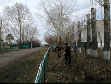 27 апреля 2021 г. на территории школы был проведен субботник. В нем приняли активное участие дети со 2 по 11 класс. Также учащиеся с 9 по 11 класс провели уборку на территории у памятника.