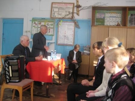 06.02.2014 года в МКОУ 1 Петропавловская СОШ прошла встреча членов президиума районного Совета ветеранов Афанасьева Владимира Архиповича и Зебницкого Николая Петровича с учащимися 6 - 11 классов "Мы этой памяти верны" с целью патриотического воспитания подрастающего поколения. Владимир Архипович читал стихи собственного сочинения на патриотическую тему, также в исполнении Владимира Архиповича и Николая Петровича звучали песни.